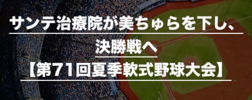 サンテ治療院が食事処美ちゅら打線を封じ込めて、サンテ治療院が決勝戦へコマを進めました。