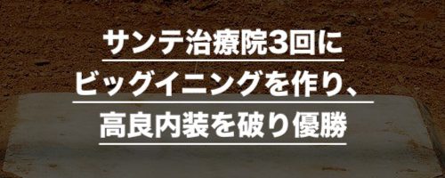 サンテ治療院が3回に猛攻をみせて5点を奪い、高良内装を破り優勝を飾りました。